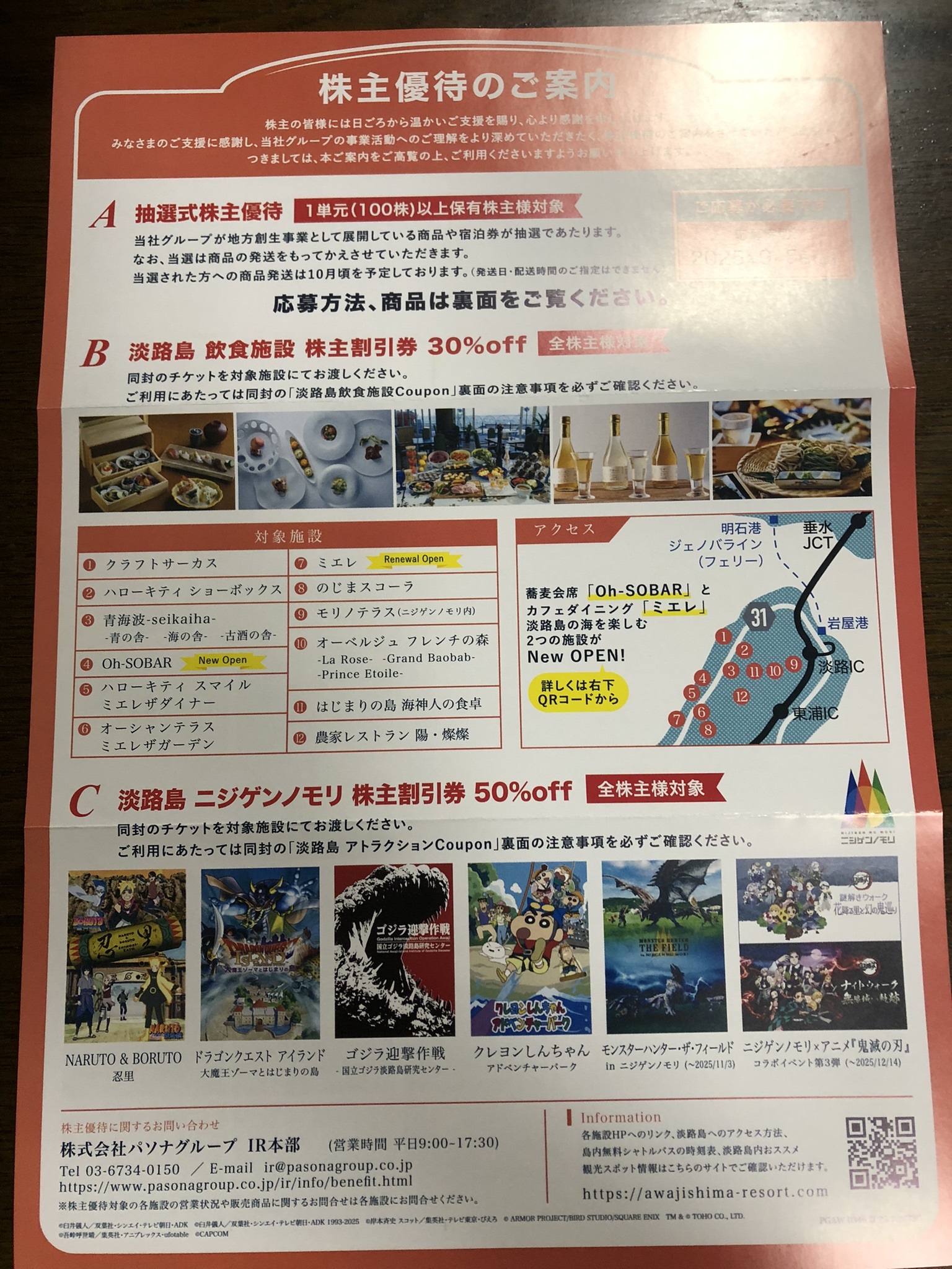 端株を保有している2168パソナグループより優待が4名義到着しました(8/12火)。