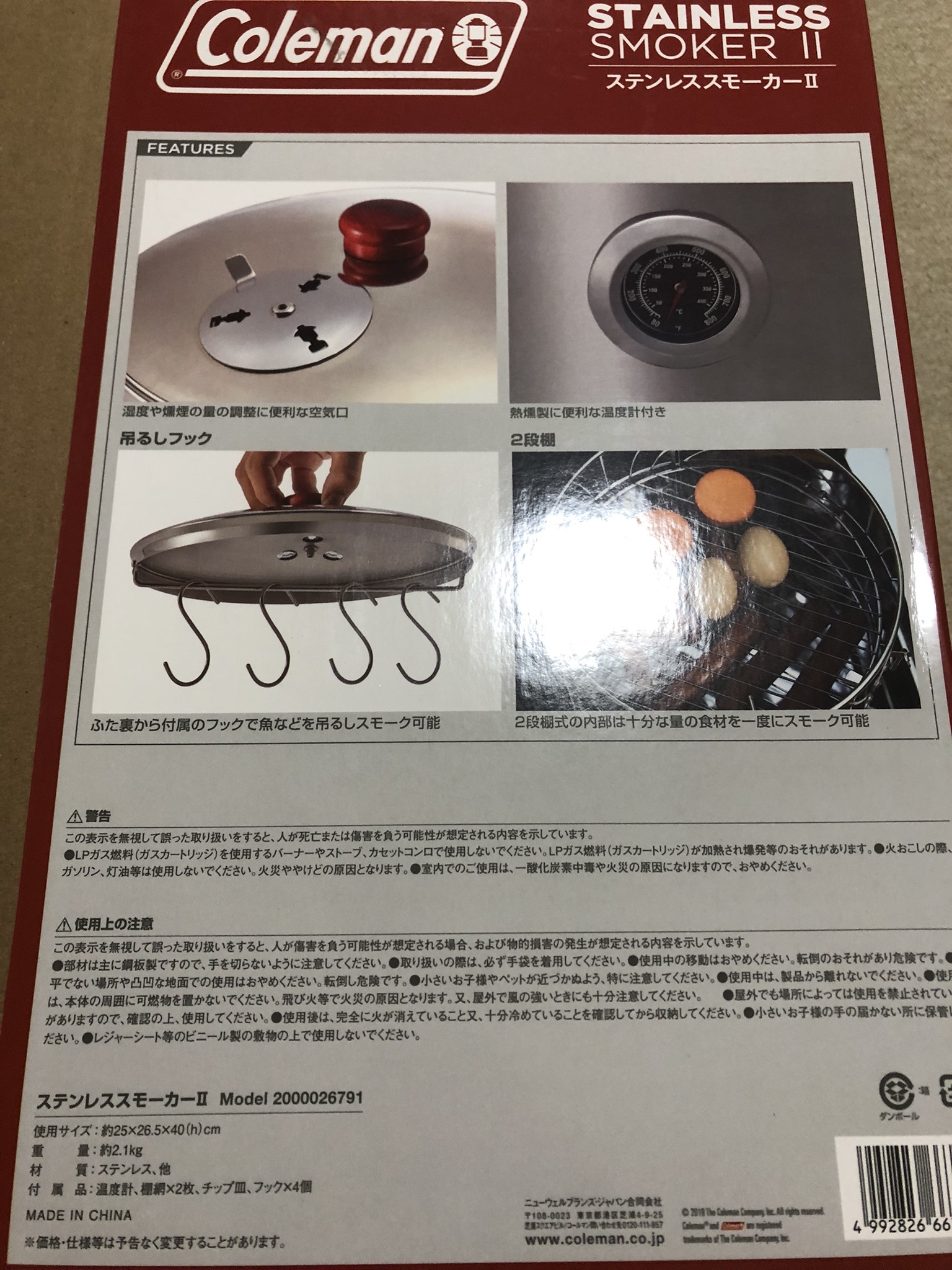 購入したのは、コールマンのスモーカーでポイントと株主優待10,000円分を利用し、差額800円ほどで購入できました。