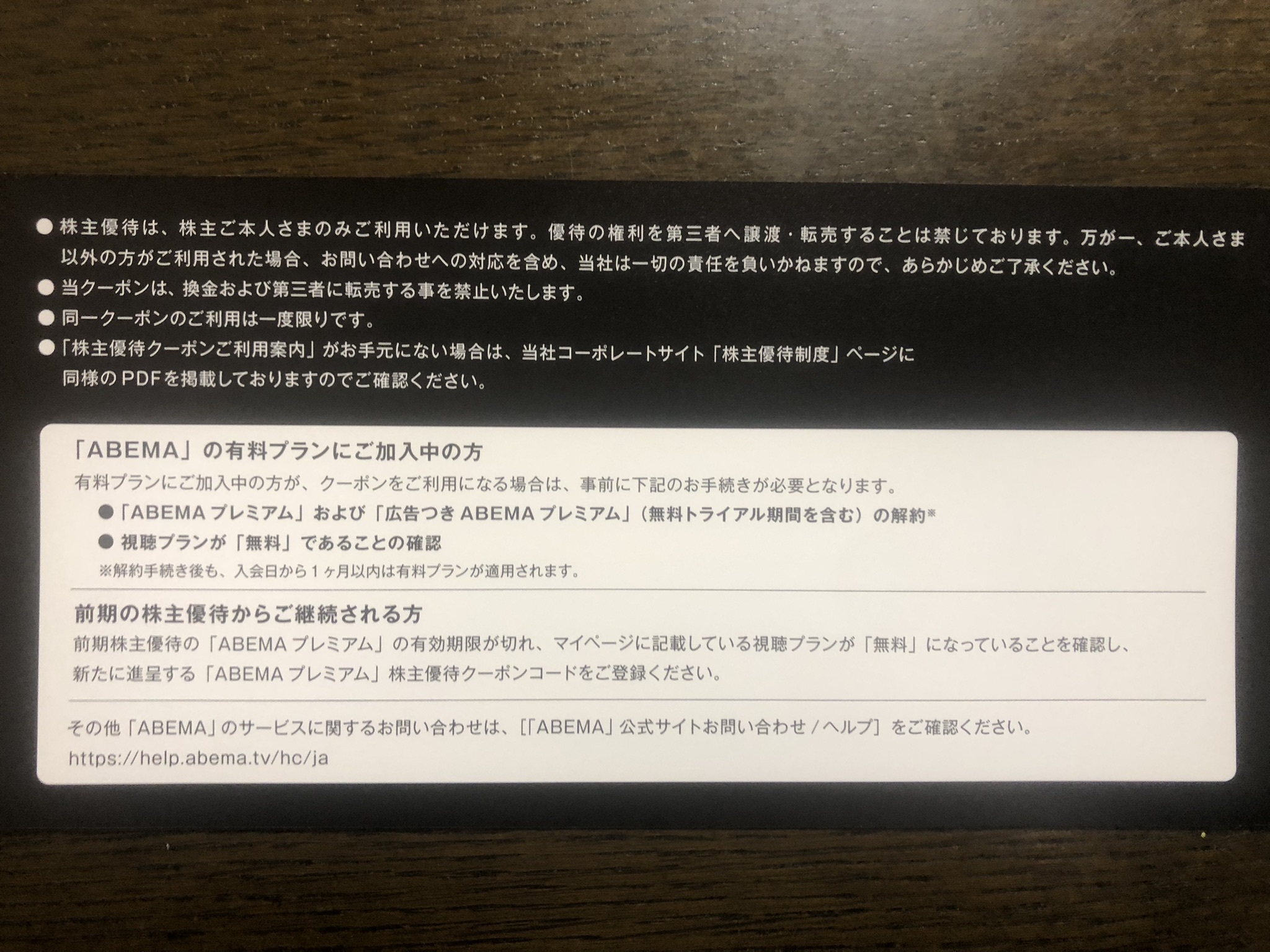 500株の優待内容は、ABEMAプレミアム1年無料です。ちなみに、100株は3ヶ月無料となっています。タップで拡大
