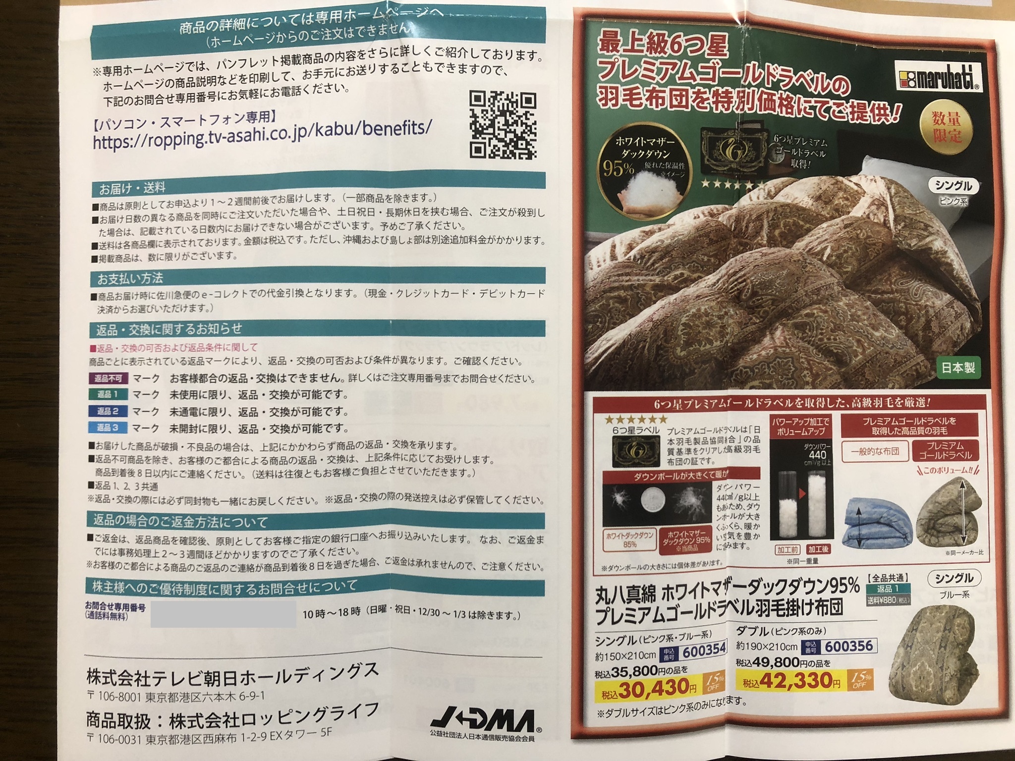 テレビ朝日ホールディングス★端株主優待到着