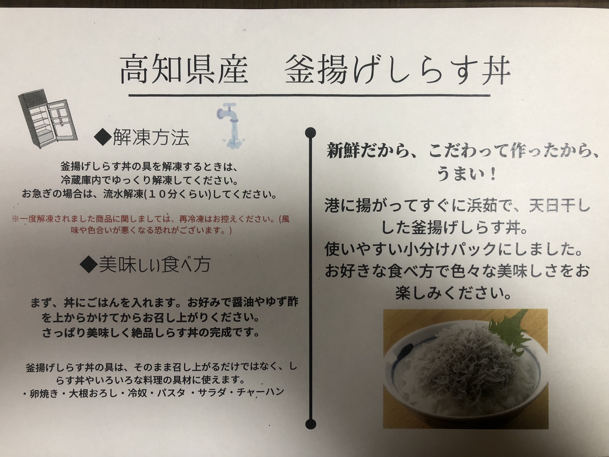 8,000円の寄附でいただいたのは、高知県産釜揚げしらす500g×2で、12/20に寄附をして1/15に到着しました。タップで拡大