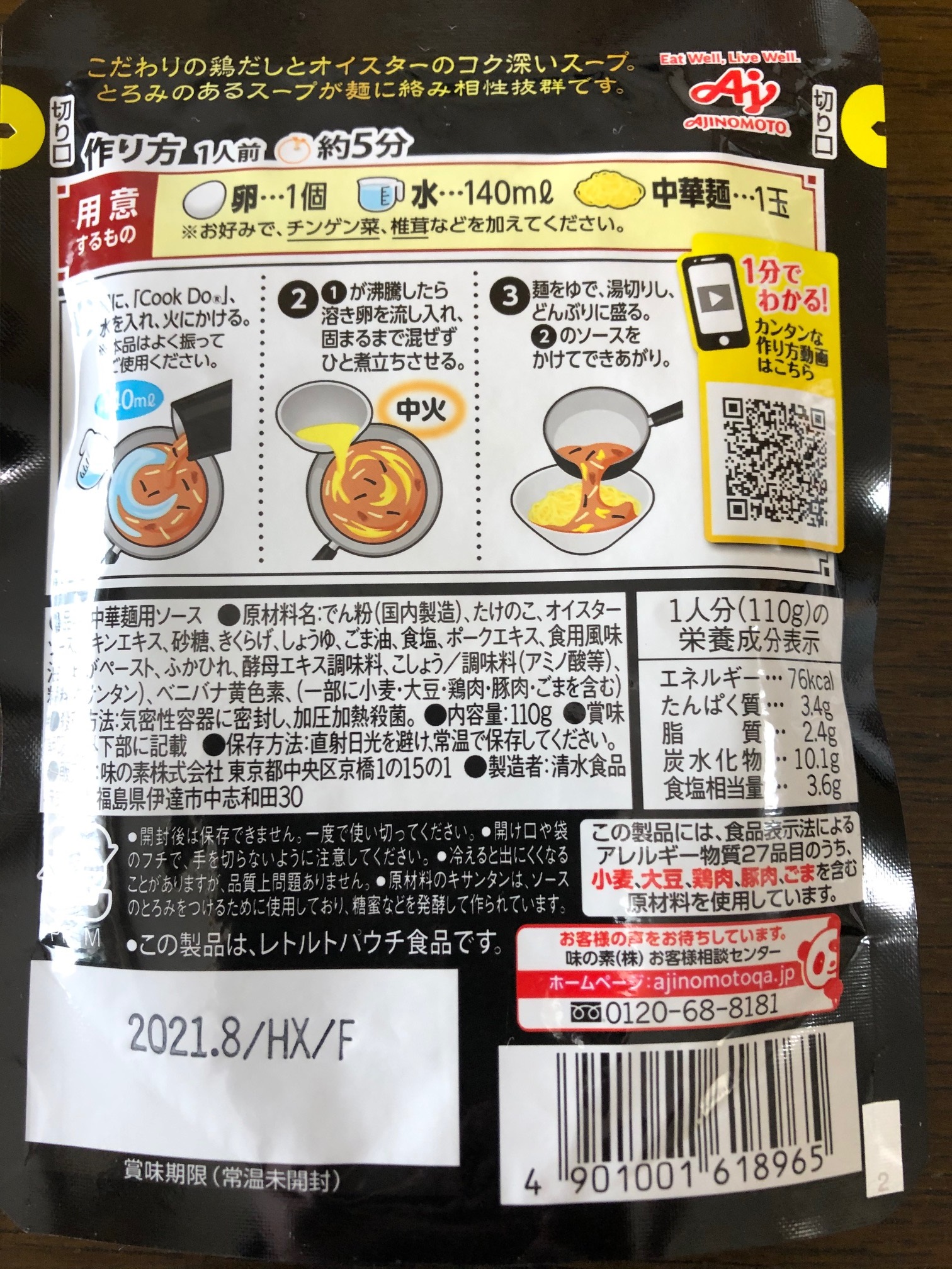 1人前×3袋×3種類の9点を950円でお試しできます。麺用のソースに卵やひき肉と中華麺を用意すれば本格中華麺が調理できる仕組みです。Cook Doなので間違いなく美味しいはずです。ひとりのお昼を手軽に済ませたい時に活用したいと思います。