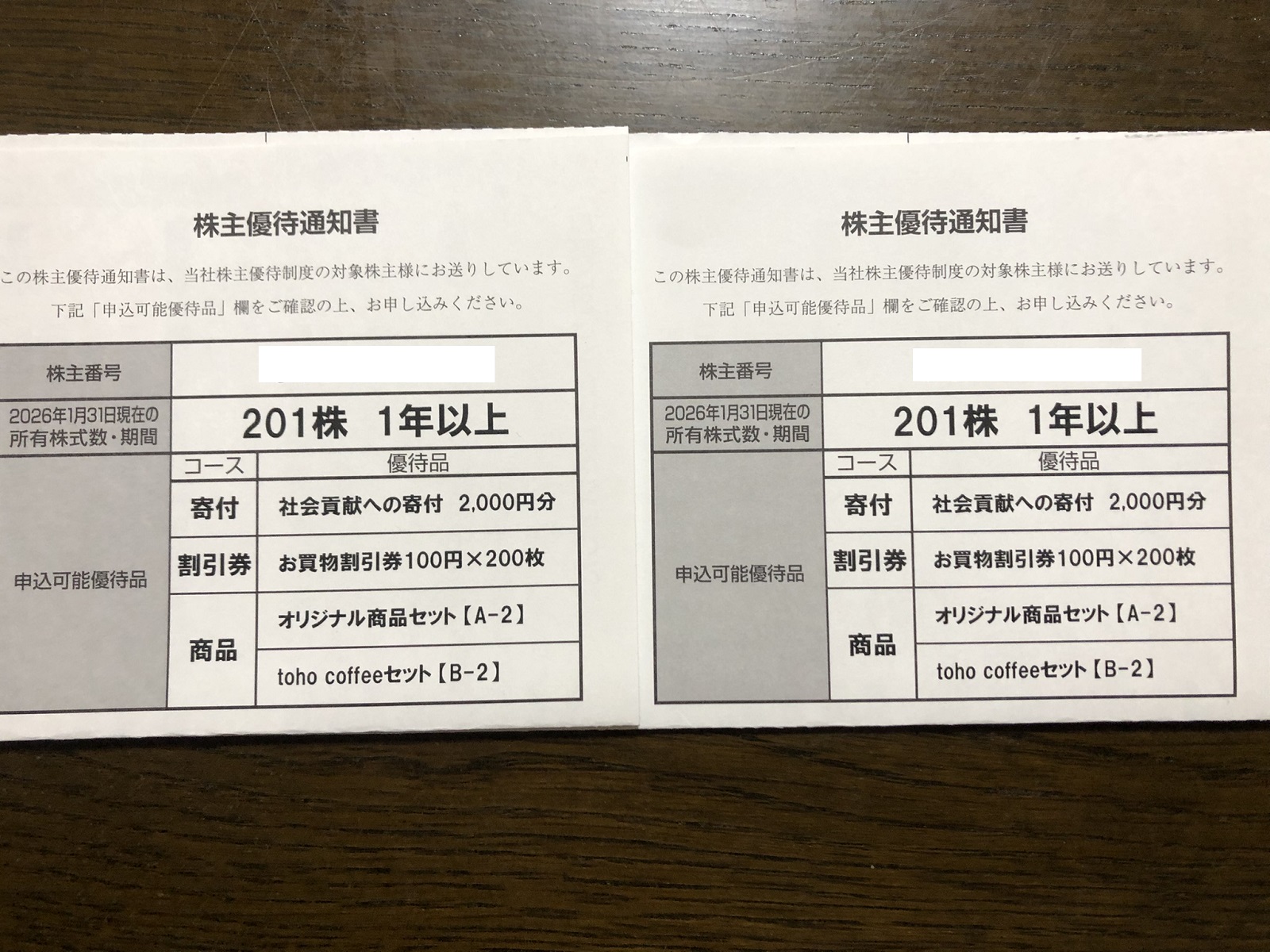 トーホー★株主優待到着